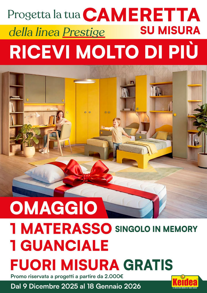 OFFERTE VALIDE SALVO ESAURIMENTO SCORTE. OFFERTE NON CUMULABILI CON ALTRE PROMOZIONI IN CORSO. SALVO ERRORI E/O OMISSIONI. PROMOZIONI ESCLUSO DI TRASPORTO E MONTAGGIO. PER LE CAMERE E CAMERETTE, SONO ESCLUSI RETE E MATERASSI. LE IMMAGINI RIPORTATE HANNO VALORE PURAMENTE ILLUSTRATIVO.